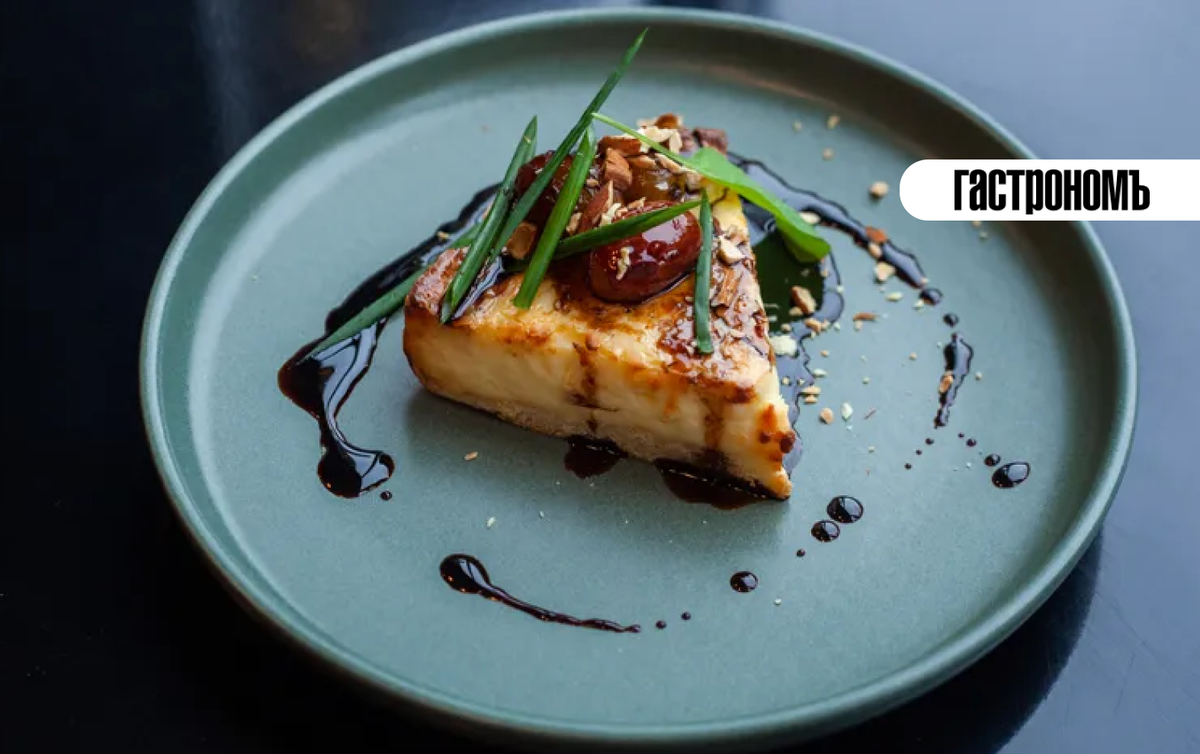 Сливочная буррата встречает сладкую кислинку груши и горьковатый кофейный соус. Тонкость приготовления — карамелизация груши и лёгкая дымка розмарина: сладость и пряность соединяются в ансамбле. На тарелке достаточно нескольких штрихов: зелень и лёгкая кислинка соуса создают баланс вместе с нежной текстурой сыра.