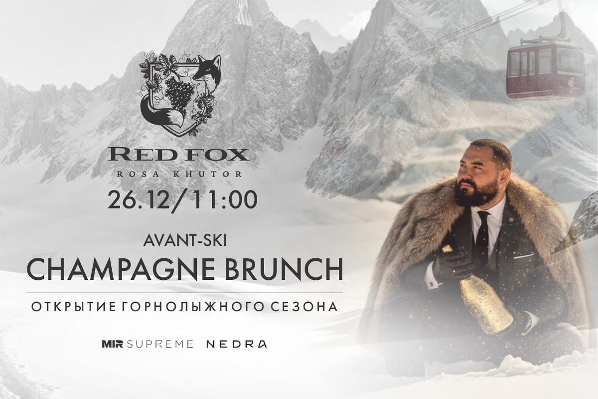26 декабря в отельном комплексе Red Fox стартует горнолыжный сезон с необычным бранчем в формате Avant Ski - «До катания». В программе гостей ожидает приветственный фуршет с изысканными устрицами и икрой, а затем авторский сет из семи блюд от шефа Тимофея Кузнецова, вдохновленный величественными горами. Стоимость билета составляет 12 тысяч рублей, мероприятие начинается в 11:00.