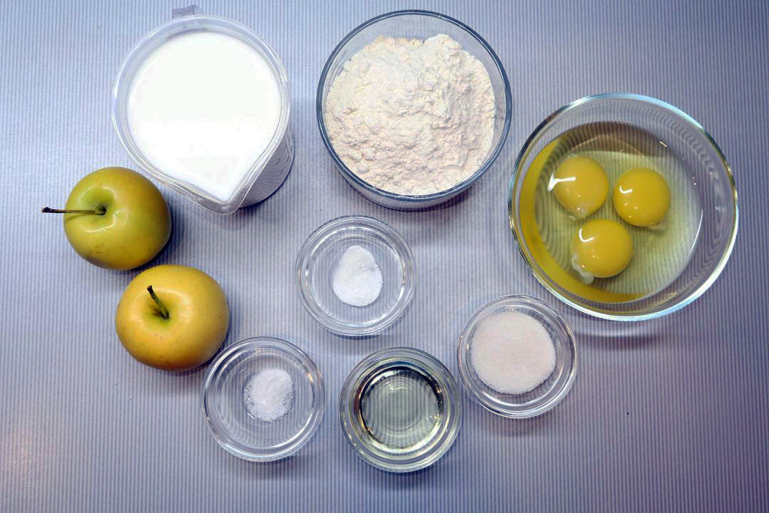 Для приготовления яблочных блинчиков потребуется следующий набор ингредиентов: