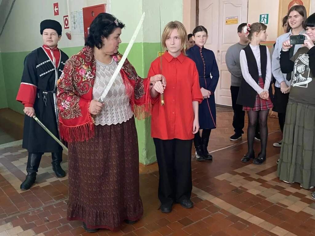 Для старших классов мероприятие подготовило особенно захватывающий момент: мастер-класс по фланкировке и рубке казачьей шашкой. Инструктор Роман Плеханов вместе с воспитанниками центра «Дончак» провели увлекательное представление, демонстрируя мастерство казачьих приемов. Учащиеся наблюдали за фигурными движениями и вскоре с большим энтузиазмом пробовали повторить увиденное, сопереживая себе и почувствовав себя частью настоящей казачьей культуры.