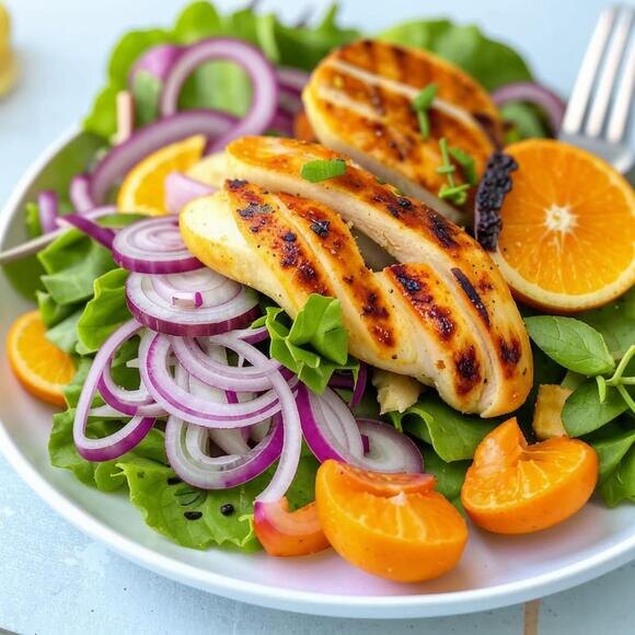 Необычная комбинация куриного мяса и свежих цитрусовых создаёт удивительно яркий вкус, который никого не оставит равнодушным. Этот салат станет настоящим украшением любого стола.