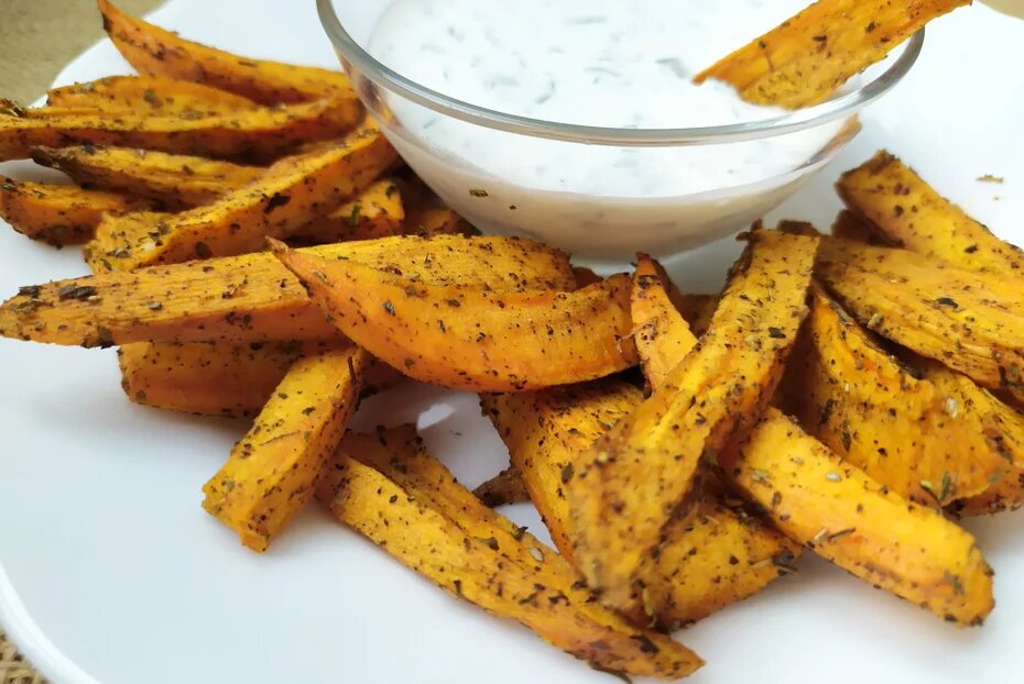 Батат — это не только полезный, но и невероятно вкусный ингредиент, который можно приготовить разными способами. Сегодня предлагаем вам порадовать себя и близких запеченным бататом дольками, ароматизированным специями и поданным с освежающим соусом. Давайте сразу перейдем к делу!