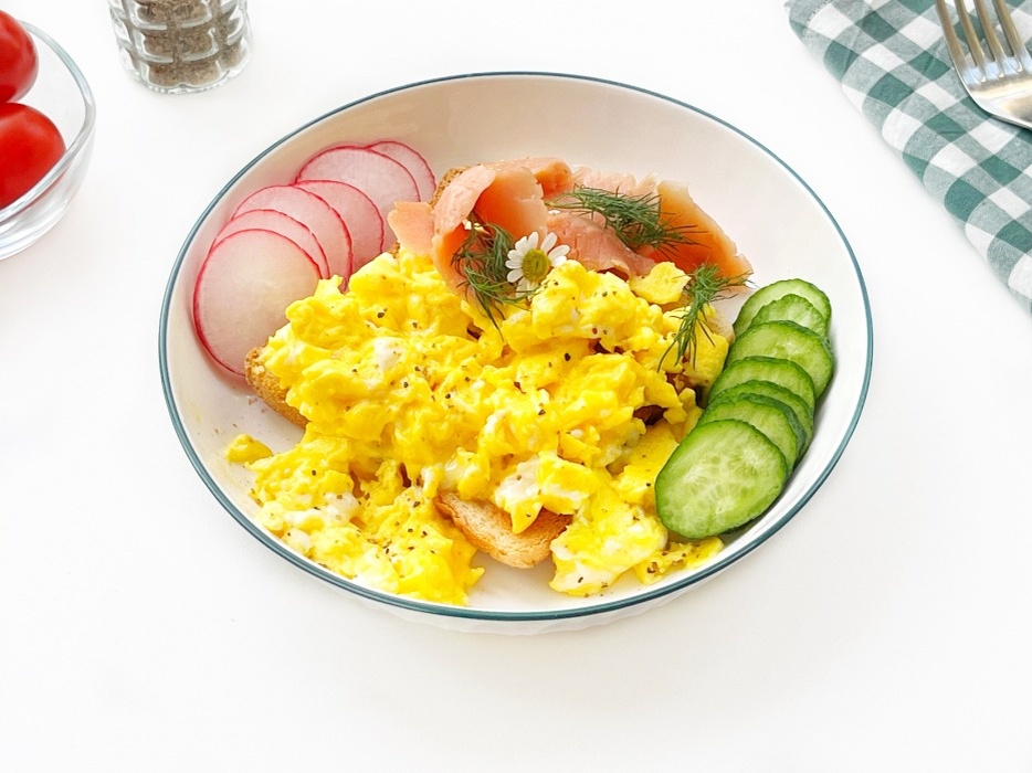 Скрэмбл, известный также как яичница-болтунья, является идеальным вариантом для утреннего рациона.