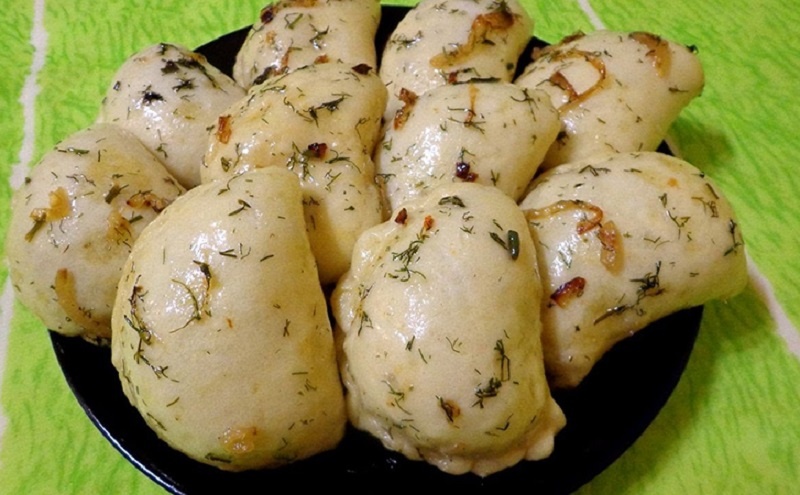Готовые вареники подаются горячими и посыпанными рубленым зеленым луком, а для дополнения можно предложить соусы, чтобы блюдо заиграло новыми нотами. Такие вареники прекрасно сочетаются с лёгкими салатами и густыми бульонами, что делает их универсальным выбором для любого стола.