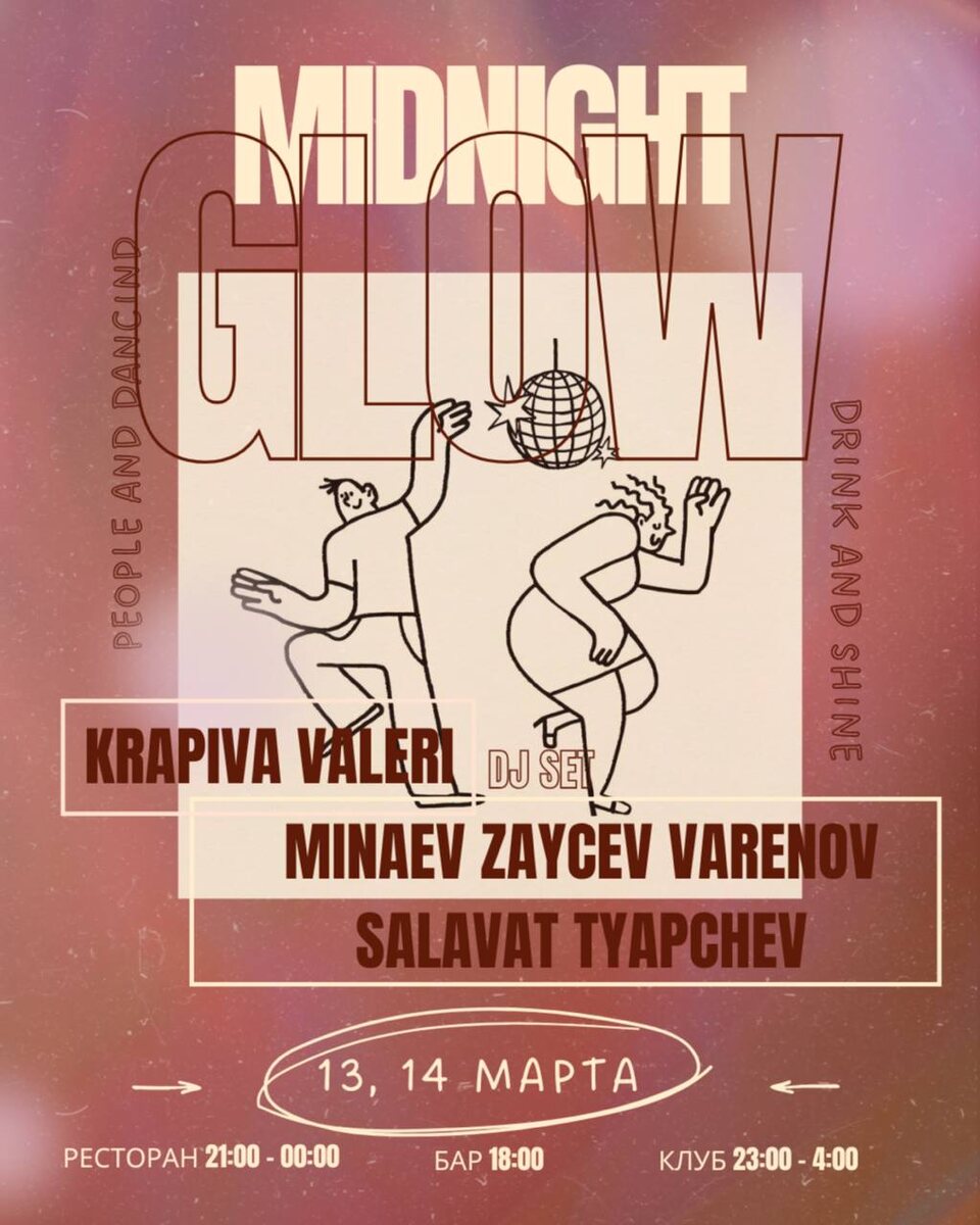 А с 23:00 начинается настоящая вечеринка, ведь клуб готов погрузить своих гостей в мир глубоких звуков и любимых треков. Танцы до самого утра — это то, чего вы так давно ждали!