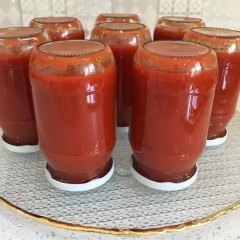 В заключение добавляется соль, а также сахар, по желанию (особенно если помидоры слишком кислы). После этого подливают уксус и доводят соус до кипения еще на 5 минут. Не забудьте убрать марлю с пряностями перед разливом соуса по стерилизованным банкам. Закатать банки и перевернуть их до полного остывания.