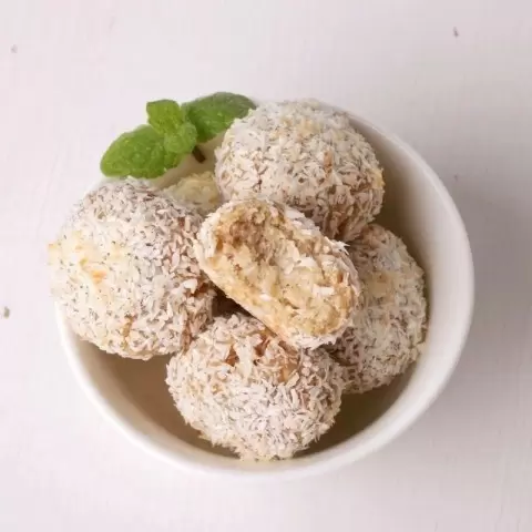 Приготовление сводится к нескольким простым шагам. Овсяные хлопья измельчаются в блендере, затем пюре банана смешивается с творогом. Получается однородная масса, к которой добавляются хлопья и все тщательно перемешивается. Из теста формируют шарики, обваливают их в кокосовой стружке и выкладывают на противень. Выпекаются при температуре 180°C в течение 15 минут.