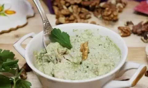 Основной акцент в этом блюде сделан на свежую рыбу и богатые духом Кавказа компоненты. В нём обязательно придерживаемся классического напарника – грецких орехов, добавляем чеснок для пикантности и зелень. Идеальная основа для полезного и вкусного угощения!