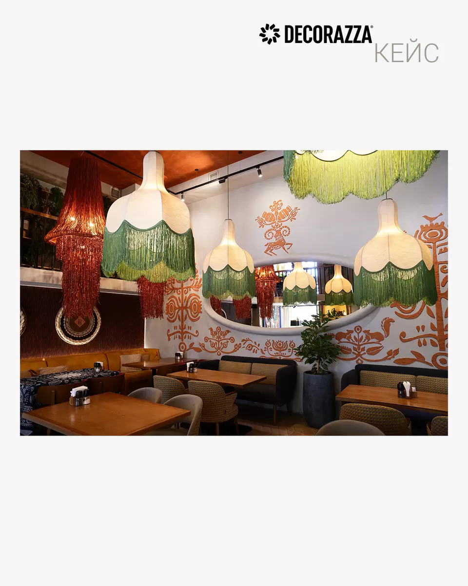 Объемные рельефные орнаменты на светлых стенах напоминают традиционные вышивки, а мягкое освещение в углублениях придаёт помещению уют, используя эффект мазанки, как будто вы находитесь в месте, где рады каждому гостю. Зона бара превратилась в настоящий Cabinet of Curiosities, пропитанный грузинским колоритом. Здесь витражи, различные текстуры и антропоморфные элементы общаются друг с другом, создавая единый эмоциональный фон.