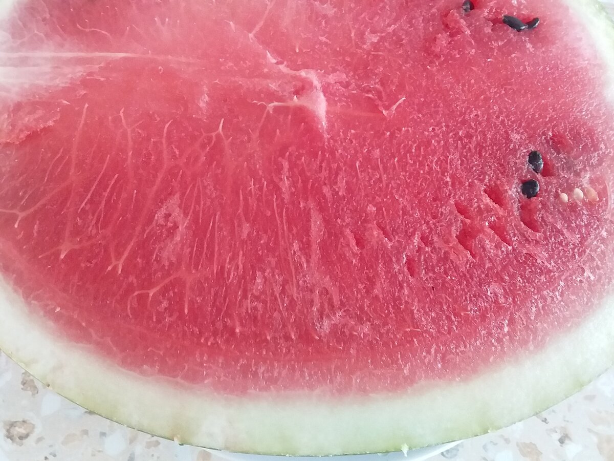 Тем не менее, у свежеприобретенных арбузов часто отмечается недостаточная зрелость. Например, разрезая один из таких плодов, можно обнаружить, что мякоть имеет лишь 80% спелости, а вкус — сладкий, но еще не идеальный. Небольшое количество сока и видимые белые прожилки подводят итоги затеянного эксперимента.