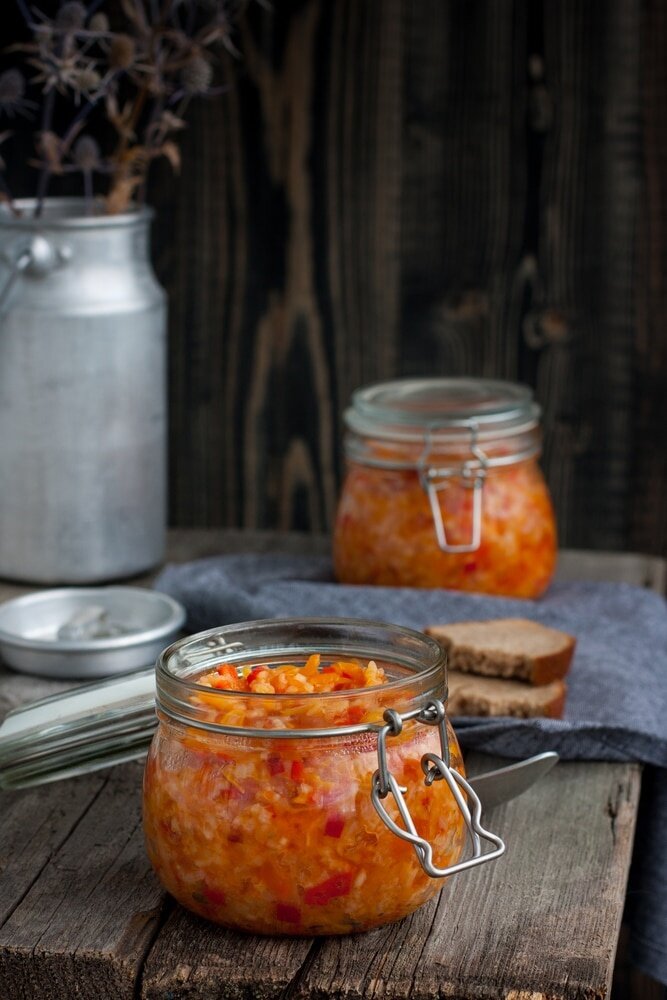 Консервация: Готовую заправку раскладывают по стерилизованным банкам и плотно закручивают. Это идеальный вариант для использования в холодные зимние дни.
