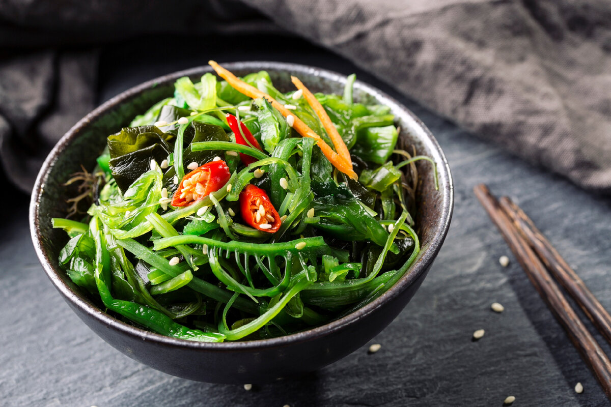- 50 г морских водорослей (припущенных)