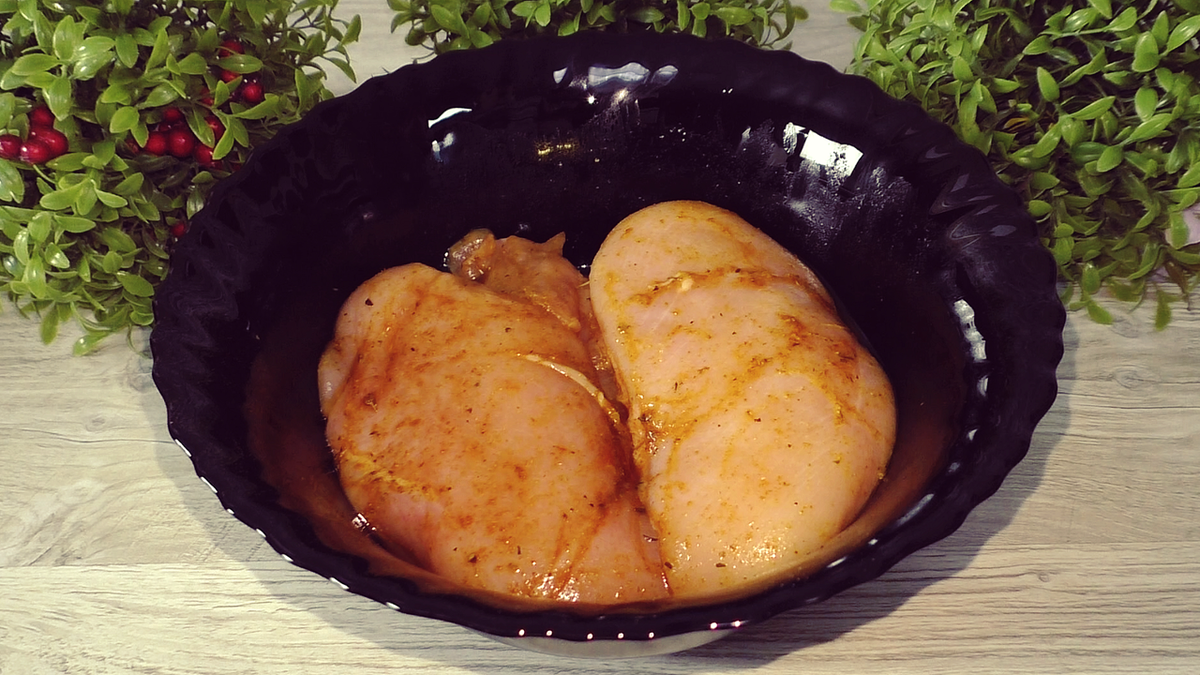 После того как все ингредиенты объединены, грудку необходимо хорошо натереть специями. Для маринования филе лучше всего завернуть его в пленку и оставить на 30 минут. Если время позволяет, можно оставить мариноваться на ночь, что сделает вкус еще более насыщенным.