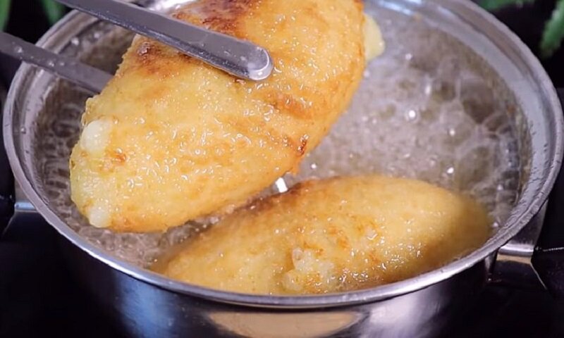 Получившееся пюре делится на части, каждая из которых превращается в лепешку. В центр помещается котлета, края защипываются, создавая "котлету внутри котлеты".
