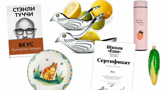 - Книги: Объединяя увлечение кулинарией и литературой, подарите книгу с гастрономическими мемуарами. Это станет настоящим найденным сокровищем для любителей кулинарных приключений.