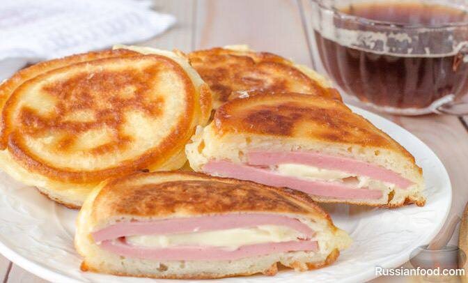 Подавайте готовые оладьи горячими — в сыре образуется аппетитная тягучесть, а колбаса добавляет блюду пикантный вкус, который порадует каждого едока.