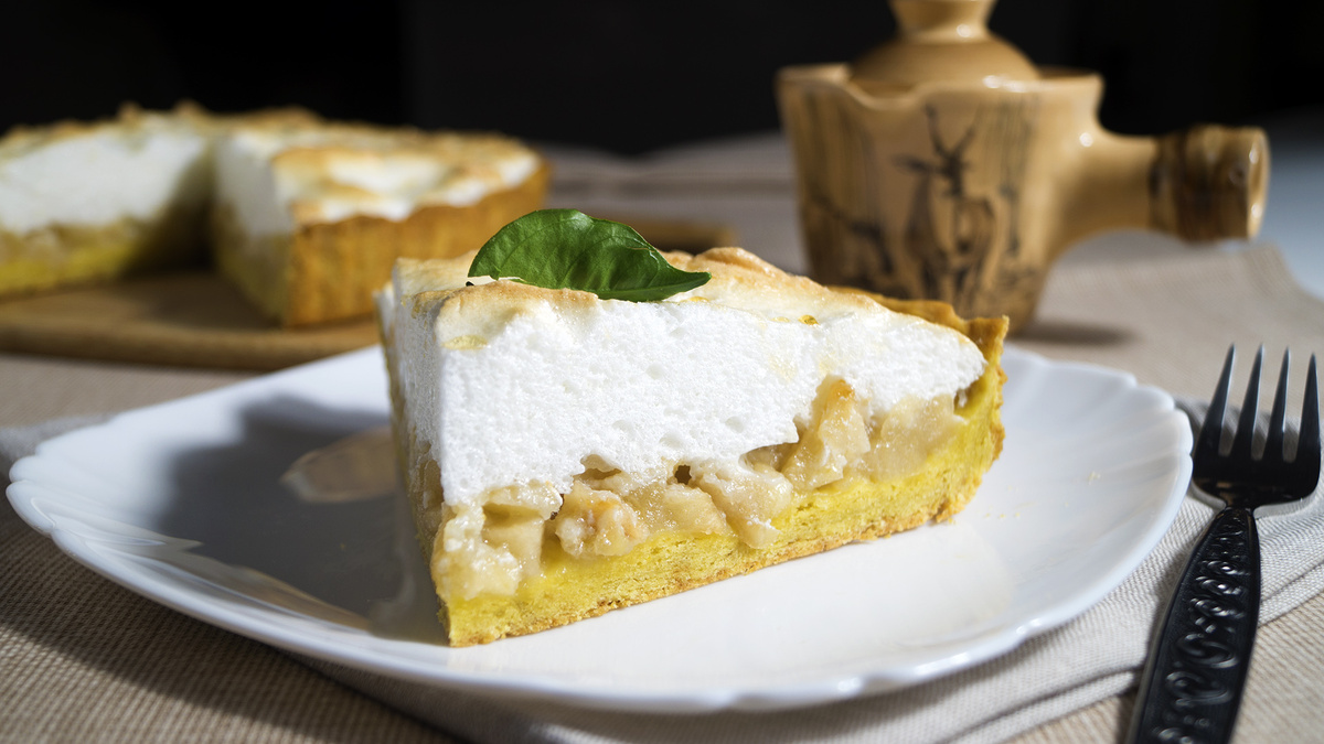 Песочный яблочный пирог с безе - это лакомство, способное занять почетное место на любом праздничном столе. С нежной песочной основой, ароматной яблочной начинкой и легкой, воздушной меренгой, этот пирог не оставит равнодушными даже самых искушенных гурманов.
