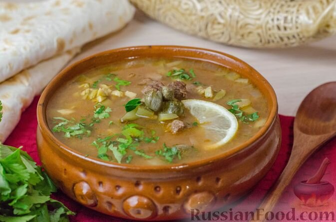 Одним из ярких представителей супов является грузинская солянка. Этот бульон готовится на основе запечённых говяжьих рёбрышек, что придаёт ему насыщенный вкус. Среди ингредиентов можно найти маринованные огурцы, каперсы и зелень, которые делают его невероятно ароматным.