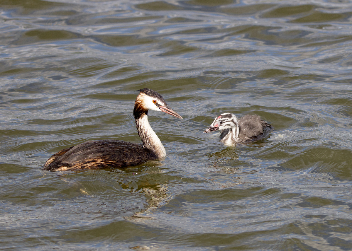 Одной из сцен, за которой можно было понаблюдать, стало кормление малыша чомги. Самец и самка практически не отличимы друг от друга. Мама-Чомга плавала по берегу, во время охоты на рыбу. Она то передавала улов своему птенцу, то делилась добычей. Силы нетерпения заставляли малыша постоянно напоминать о себе – он даже пытался клюнуть маму в спину, за что получал легкое ударение в лоб!