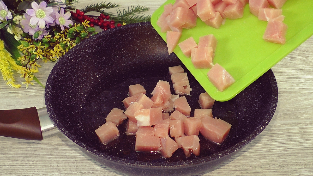На разогретой сковороде с растительным маслом обжарьте мясо до легкой корочки. Хотя этот этап можно пропустить, обжарка придает блюду особый вкус.