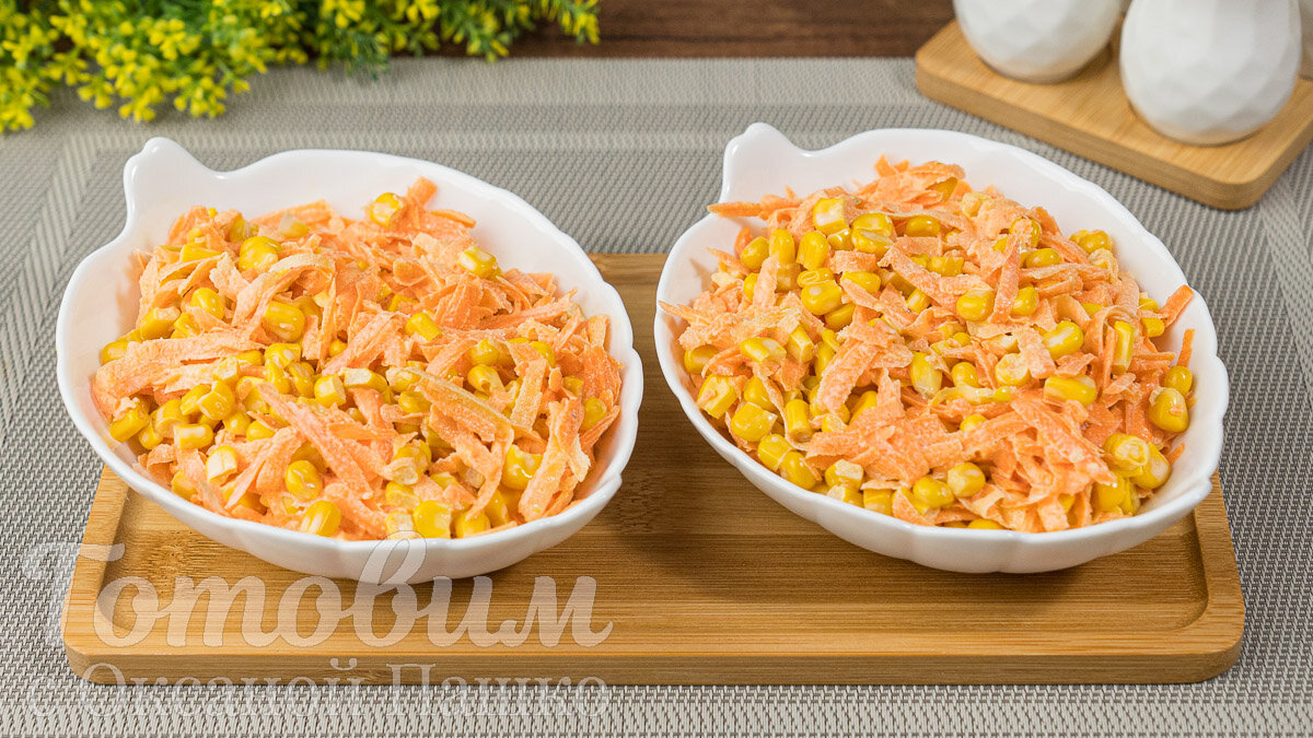 Этот салат, который можно приготовить всего за пять минут, станет настоящим спасением в любой ситуации. Его неповторимый вкус и аромат при минимуме ингредиентов обязательно порадуют всех. Сочная морковь отлично гармонирует со сладкой кукурузой, а добавление чеснока придает блюду пикантность. Такой быстрый салат идеально разнообразит ваше ежедневное меню и будет незаменим, когда к вам неожиданно заглянут гости или когда вы просто не хотите тратить время на готовку.