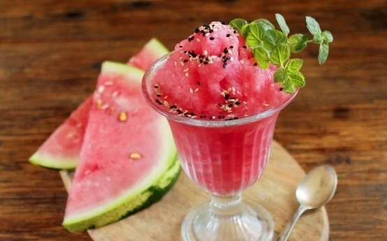 Арбузный лёд следует подавать незамедлительно, так как он тает на глазах. Это лёгкое и освежающее лакомство подарит вам удовольствие и заряд бодрости в жаркий летний день. Не забудьте украсить каждую порцию мятой — она добавит не только яркий цвет, но и полезные свойства.