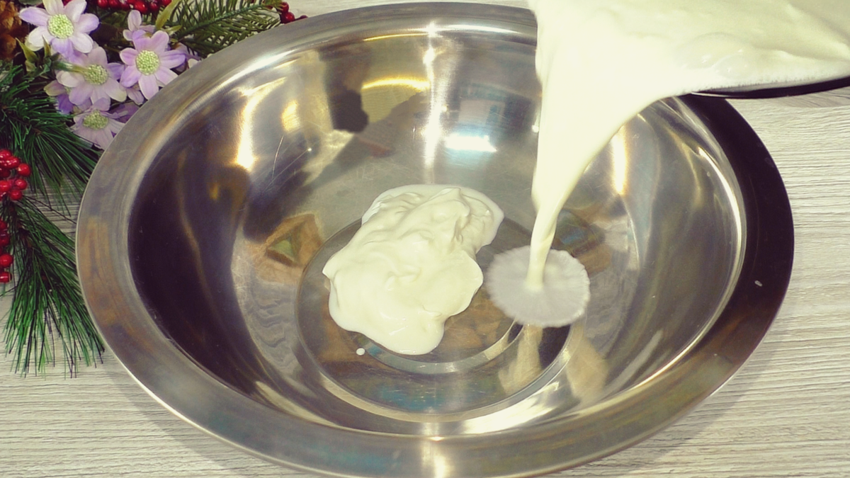 Приготовление теста начинается со смешивания тёплого кефира и сметаны в глубокой миске. Затем вводятся желтки и растительное масло. Секрет вкусного теста – это правильные пропорции соли и сахара: 2 ч. л. соли без горки и 30 г сахара помогут сделать тесто не сладким, но ароматным.