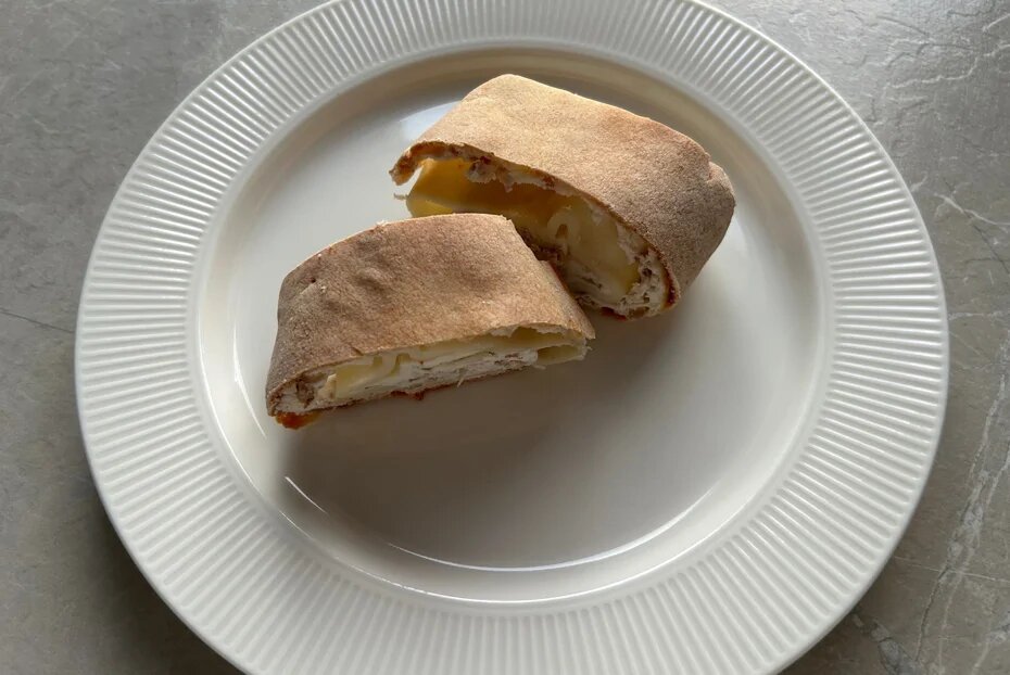 9. Переложите получившийся штрудель на противень, выстланный пергаментом, и выпекайте в разогретой до 180 градусов духовке в течение 30 минут.