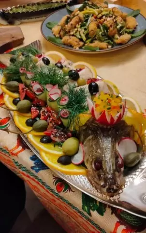 - Копчёный окунь, идеально сочетающийся с квашеной капустой и грибами.