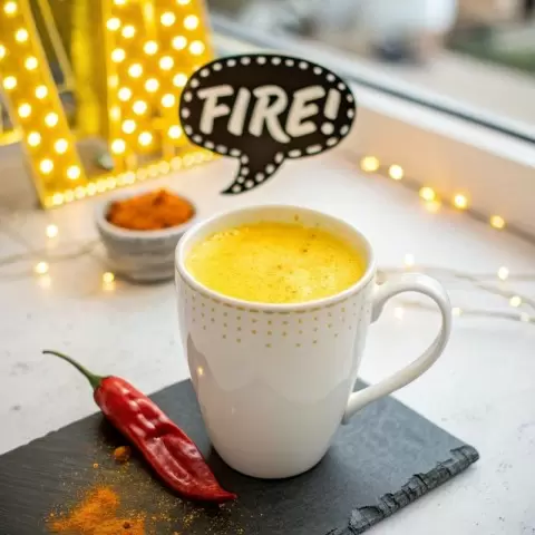 - Золотое молоко: рецепт, в котором молоко (коровье или растительное) смешивается с куркумой, имбирем, медом и корицей. Просто нагреть, взбить, и насладиться.
