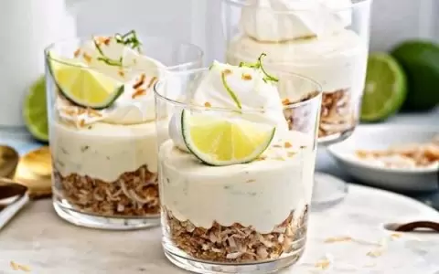 Холодный май стал отличным поводом добавить немного тропиков в десерт. Лаймовый чизкейк на кокосовой основе в стакане – это сладкое объятие южного солнца, способное прекрасно поднять настроение даже в самые прохладные дни. Кокосовая корочка из крекеров идеально гармонирует с нежной начинкой из лайма и взбитыми сливками, создавая впечатление нахождения на роскошном курорте.