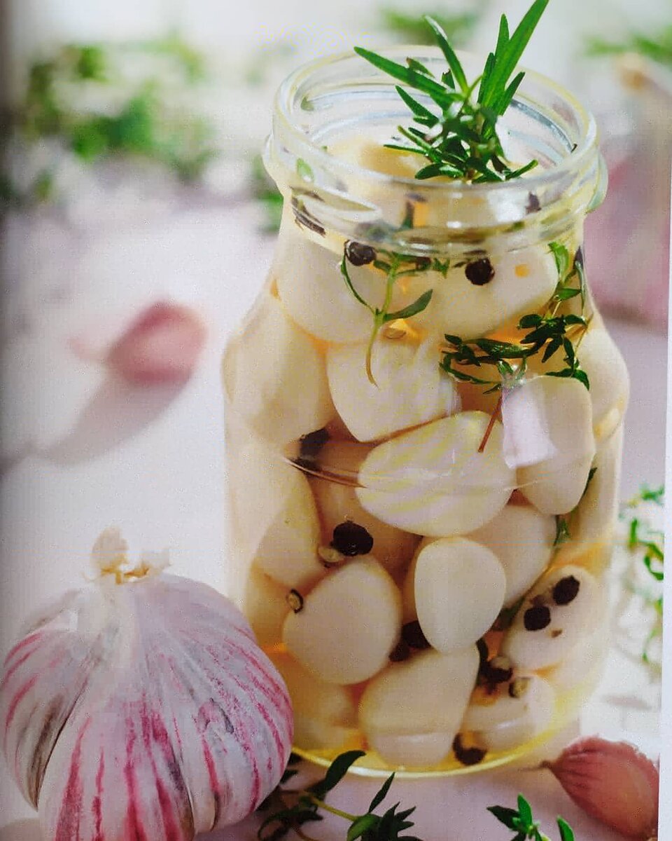 3. Уложите целые дольки чеснока в подготовленную банку, залейте кипящим маринадом и закройте крышкой.