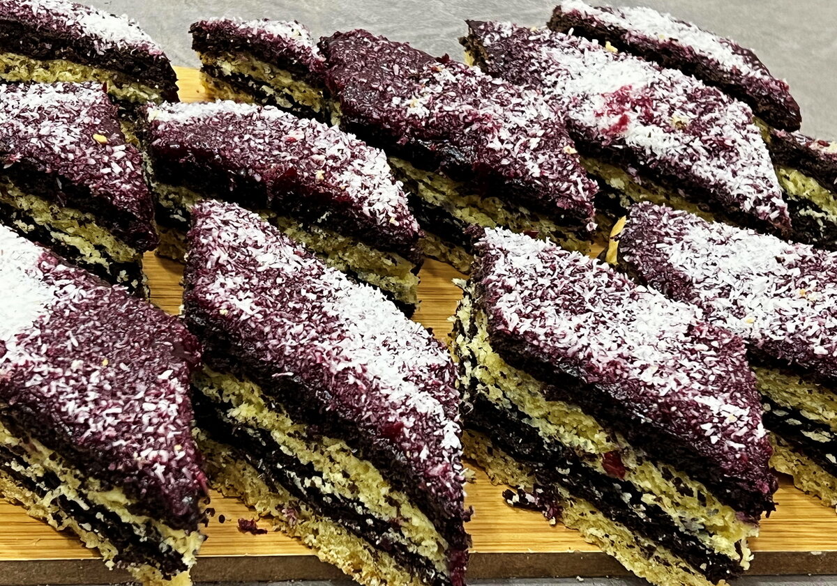 После смешивания всех ингредиентов нужно разделить тесто на две части. В одну из них добавьте какао и молоко, тщательно перемешайте. Получится два вида теста: ванильное и шоколадное. Затем каждую часть разделите на 2 кусочка и раскатайте их в прямоугольники. Укладывайте их слоями, чередуя цвета, и затем раскатайте еще немного, добиваясь толщины около 2 см.